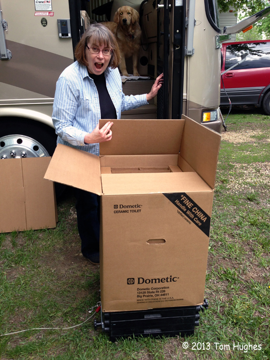 So . . . I met this guy in our campground who ran an RV service and could get me a brand new SeaLand at cost. (It wasn’t like “Psst, buddy, want to buy a toilet”, but pretty close.)