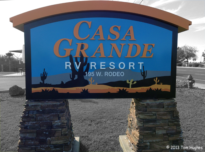 Our current campground, Casa Grande RV Resort, was a disappointment at first because the campground’s dog park was just a walkway around a water retention pond. Super.