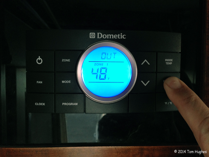 Tom’s installing another web camera in our RV so we can monitor the dogs from another angle. This camera has sound — so we can tell the dogs to “Stop that!” over an Internet connection. So we’ll need another AC outlet in order to hook up the new camera.
