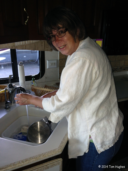 We have a small (actually very small when compared to a house’s) water softener. Just like a house softener, it has to be recharged every so often. In our case, Tom waited a month too long, so the recharge was long overdue.