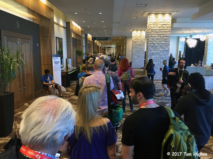 A Music badge grants “primary” access to all music events. Wally and Sue both had Platinum badges which gave them access to all SXSW events. For most events, there are two lines to get in — Primary (first to get in) and Secondary (last to get in). For heavily attended events (movie premieres, popular speakers), Primary access may be the only folks to get in.