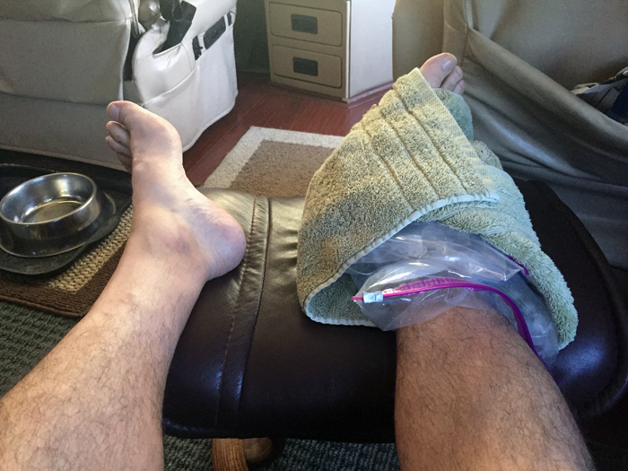 On Friday, July 28th, our first day back on the road, I tripped as I was exiting our RV and sprained my ankle.