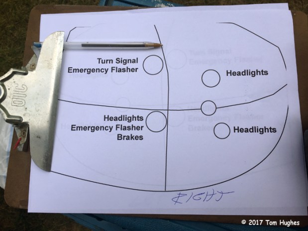 Our Newmar uses a 3-wire system. To determine what wire did what I had Jan use each turn signal, the brakes, and the headlights. I watched which tail light bulbs came on and mapped each one’s function: