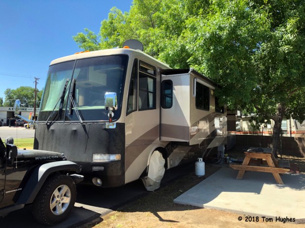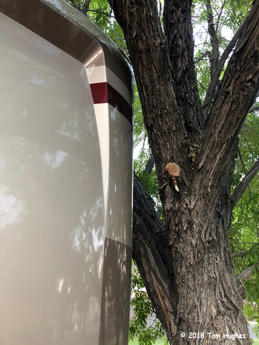 As you can see, we’re right under a couple of trees. It took some fine driving (kudos, Jan) to wedge our way between the two trees . . .