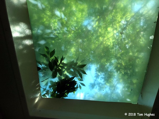 When we look out our windows now, we see lawn and trees, but I think the best view is from our shower’s skylight . . .