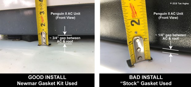 When one of our two Dometic Penguin II ACs on our 2001 Newmar Mountain Aire gave up the ghost recently (see New AC, New Campsite), we had a local RV repair shop replace it. Before they started, I suggested they contact Newmar because I thought there was a special gasket that went between the Penguin II and the RV roof. There actually is a special gasket, but the repair shop didn’t get one.