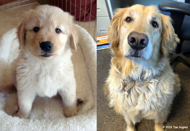 About a week ago our Golden Retriever turned six years old. No longer a puppy. So we celebrated by getting all maudlin as we remembered our former dogs.