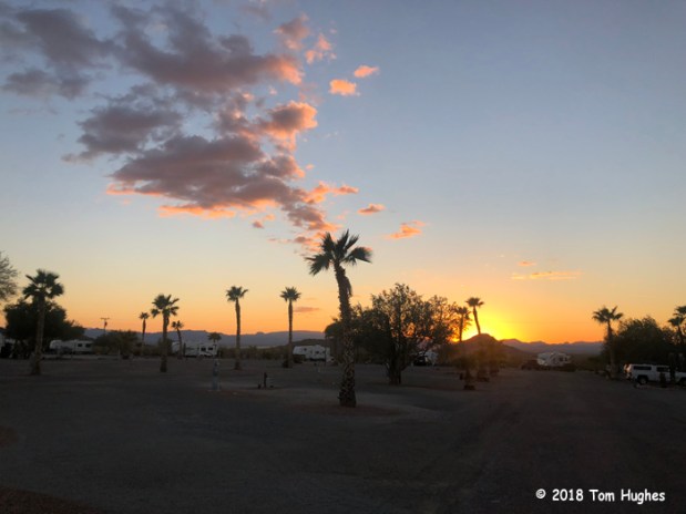 500 miles (and 50 gallons of diesel) out from Bishop, CA and we’re at the Ramblin’ Roads campground. We took Highway 95 in California to get here and it was a great road . . . a two-lane with lots of dips that winds through terrific dessert scenery.