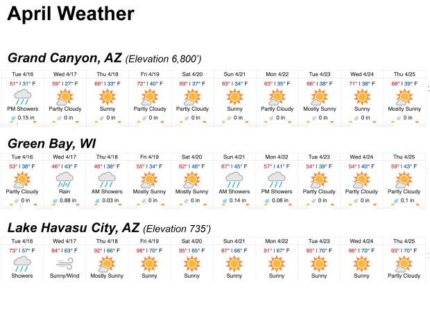 Also, the Grand Canyon is at 6,800 feet. Elevation plays a huge role in weather as the further up you go, the colder it gets.