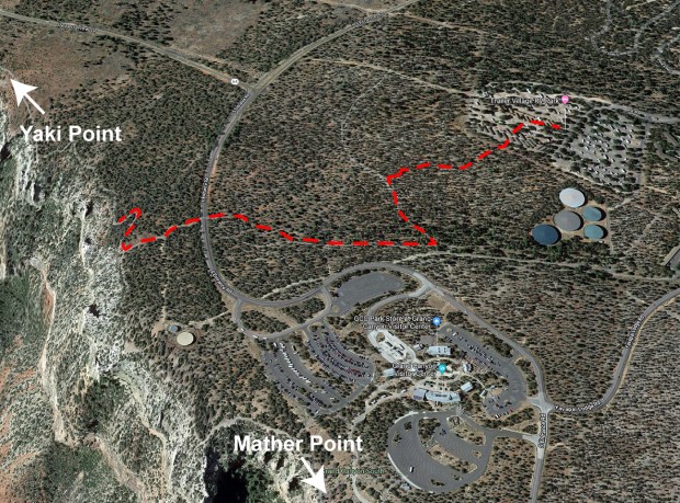 Our goal was Yaki Point, but most of the route would be sharing with bicyclists so we decided to stop at the canyon rim.