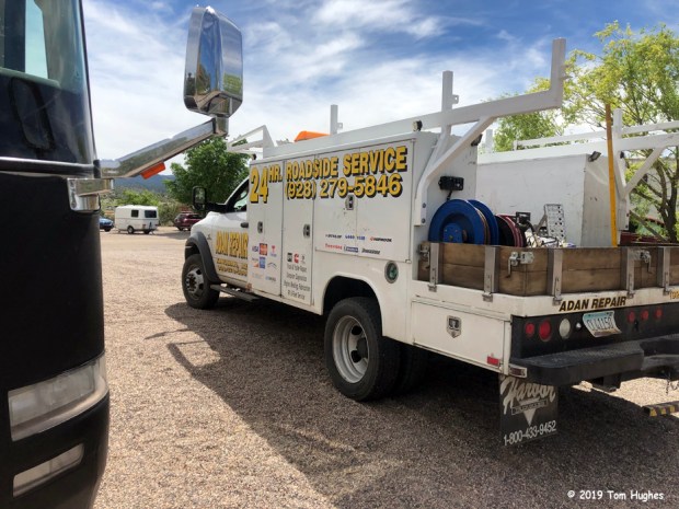There was no way I wanted to do this level of troubleshooting, so time to call Coach-Net, our road side service provider. A few hours later help arrived . . .