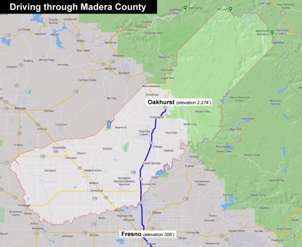 After two days at the Success Lake campground, we hit the road for our next campground in Oakhurst, CA. We followed Highway 99 to Fresno and then Highway 41 to Oakhurst.