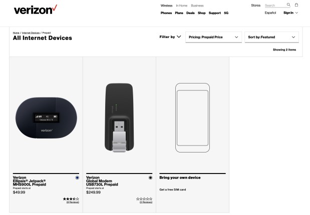 (3) Next, select an Internet device. NOTE: It’s been reported that the 8800 Jetpack is also available. However, you’ll have to talk a salesman into selling you one: