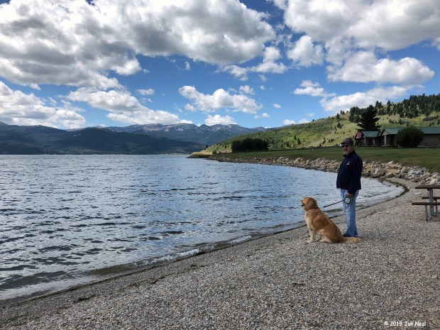 Tom & Flirt on the shore of Lake Hebgen