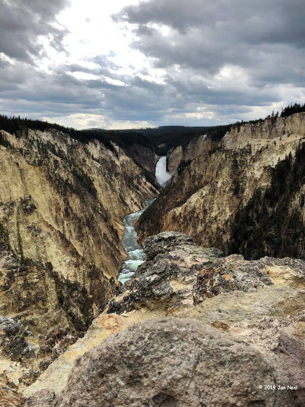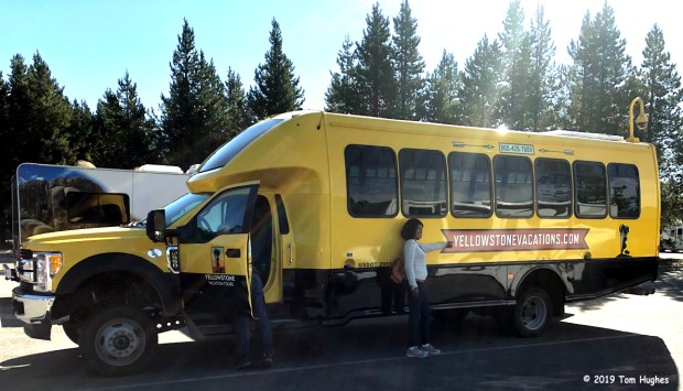Just like Glacier National Park, we decided to let others do the driving and we both signed up for Yellowstone tours. We did this reluctantly because the tours were 8 hours long . . . a lonnnnnng time to sit on a bus or van. Also, we both couldn’t go at the same time because we couldn’t leave Flirt alone that long. So Jan took the 1st tour, and I did the 2nd. Both tours turned out to be really good.