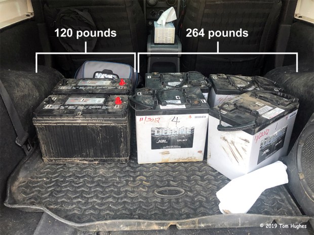 I replaced our RV’s two engine batteries (12V Interstate 31-MHD) and four house batteries (6V Lifeline GPL-4CT).