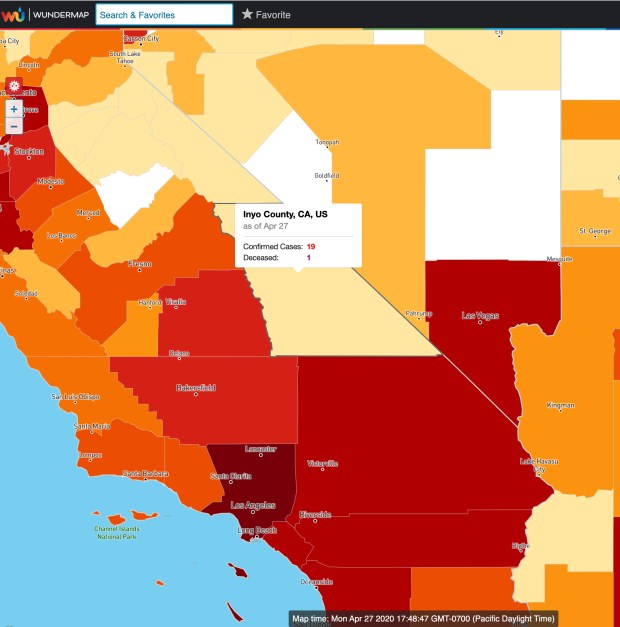 Bishop is in Inyo County which currently has a low COVID-19 infection rate, especially when compared to the surrounding counties.