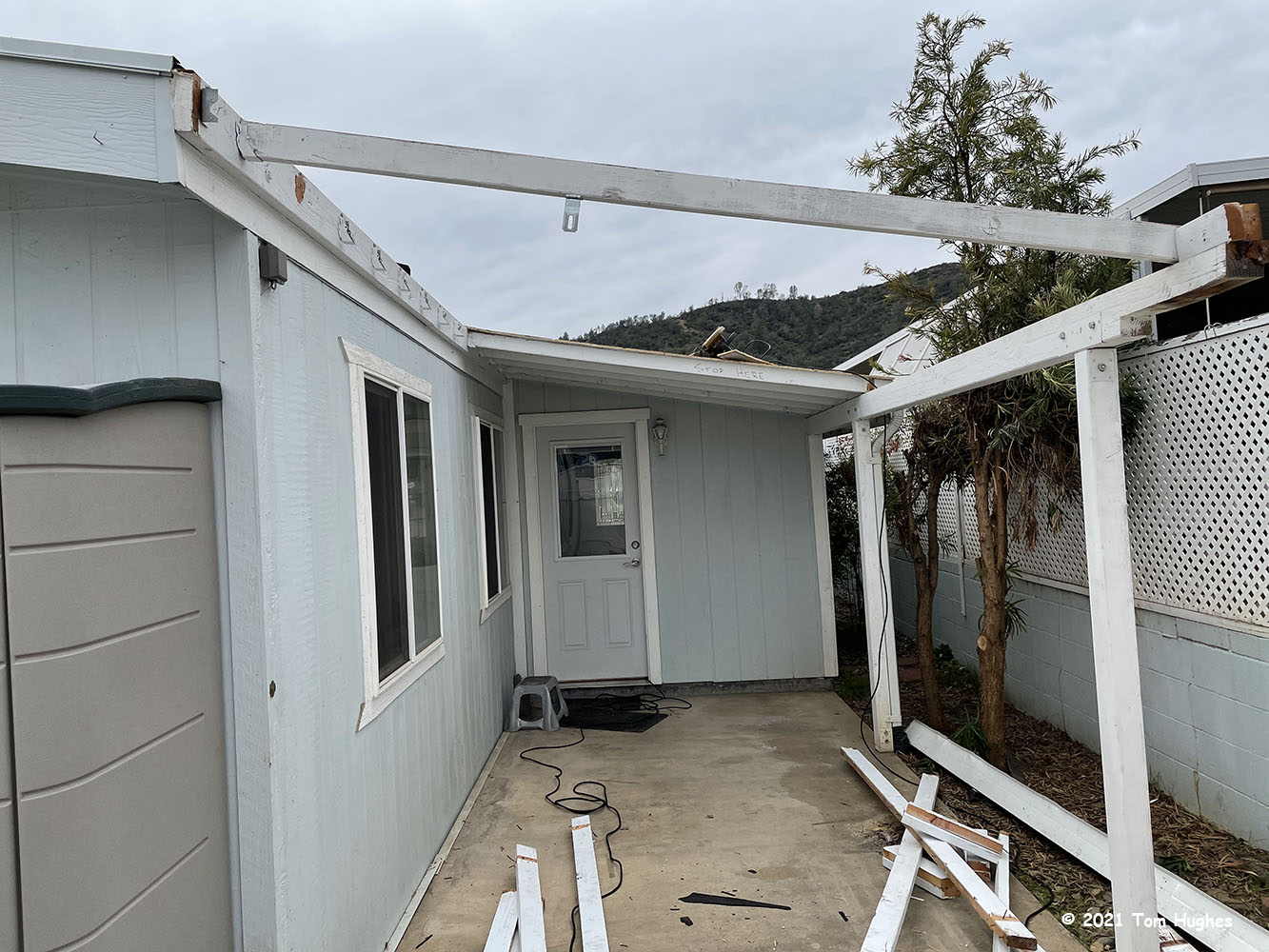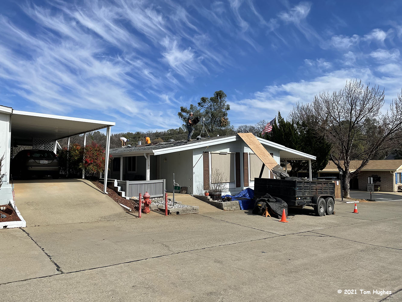 Then it rained last night on our partially done new roof. Woke up at 4 am to a drip dripping near my nightstand. You betcha, we sprung a leak in our bedroom. Since we may not be fully shingled for a few days, and, of course, there’s rain in the forecast, I’ll be performing some “redneck” roof repairs on my own. More to follow.