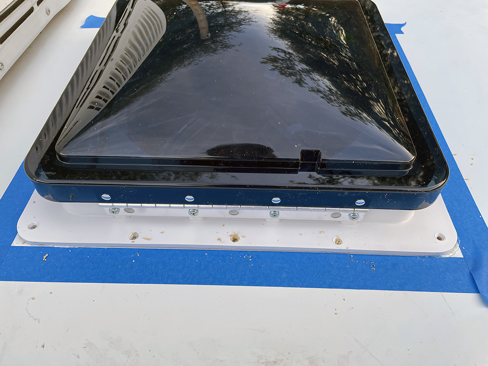 We’re talking about two Fan-Tastic Fans which we recently installed on our RV roof. Explanatory pictures follow . . .