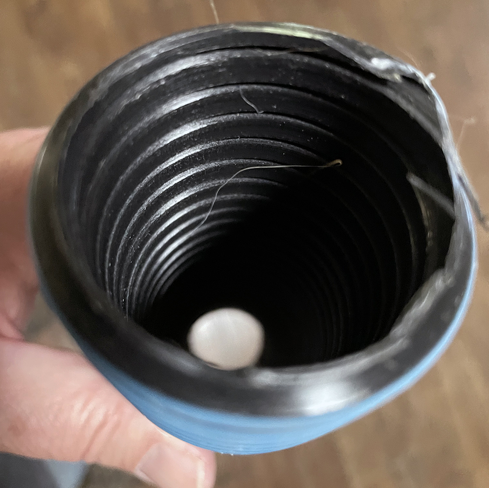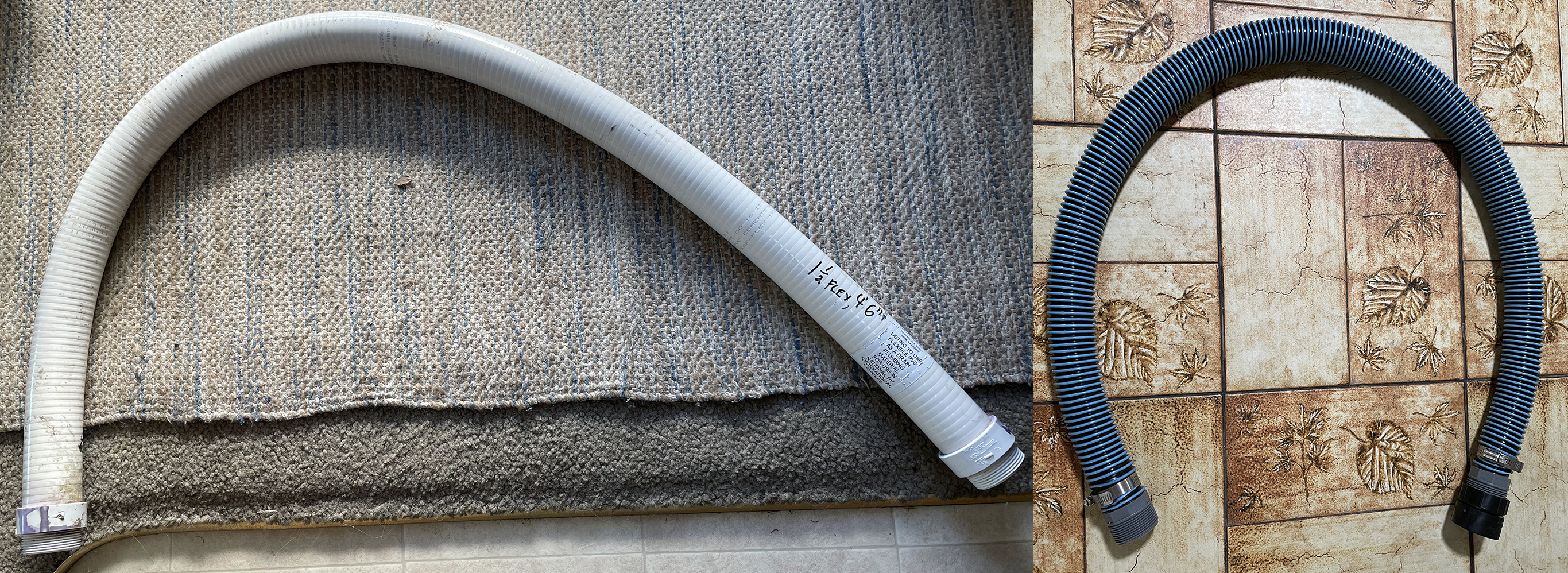 The new hose is much more flexible. However, it’s smaller in diameter and does not have a smooth interior like the original hose. Long story short . . . it will clog more easily. C’est la vie.
