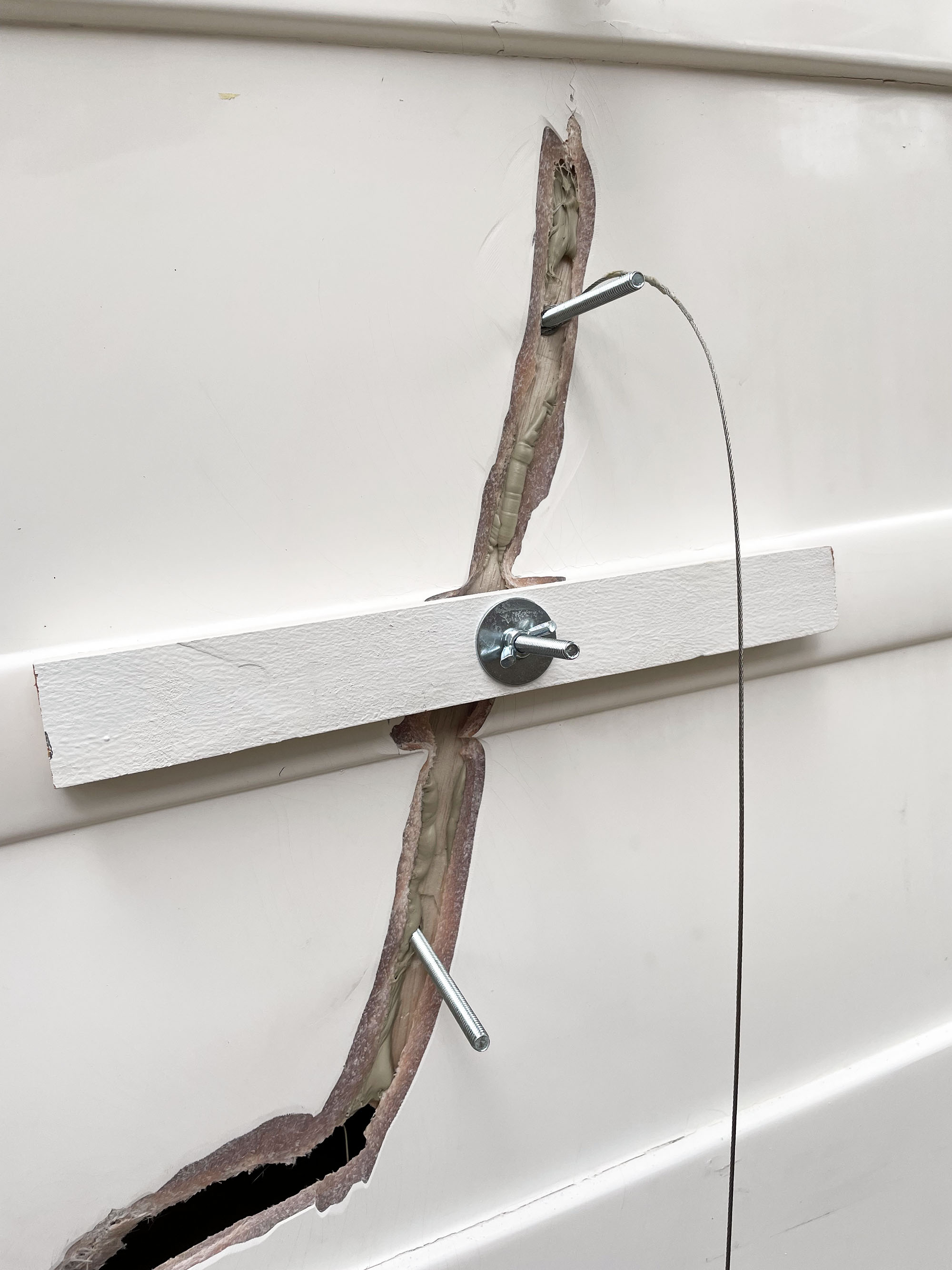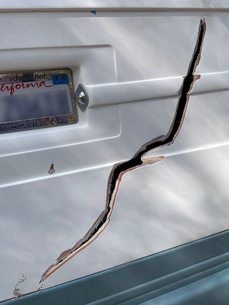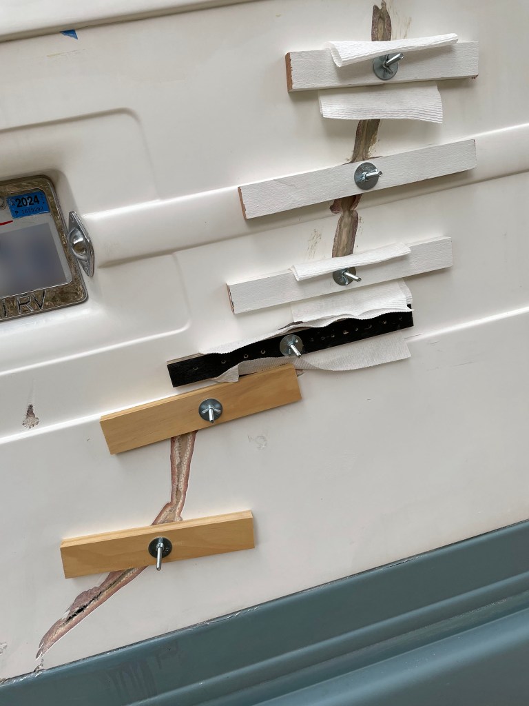 It was not possible in our case as there is only about 6 inches a space behind my RV’s damaged rear cap. Not nearly enough space to work in. What to do?