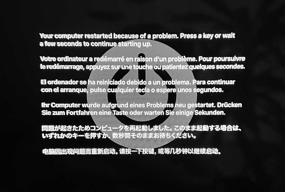 First, during the past week the “Mac screen of death” appeared more and more. My iMac would freeze and then restart with this screen: