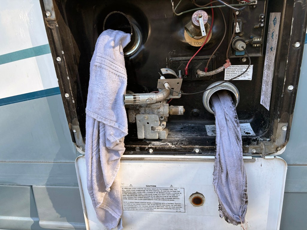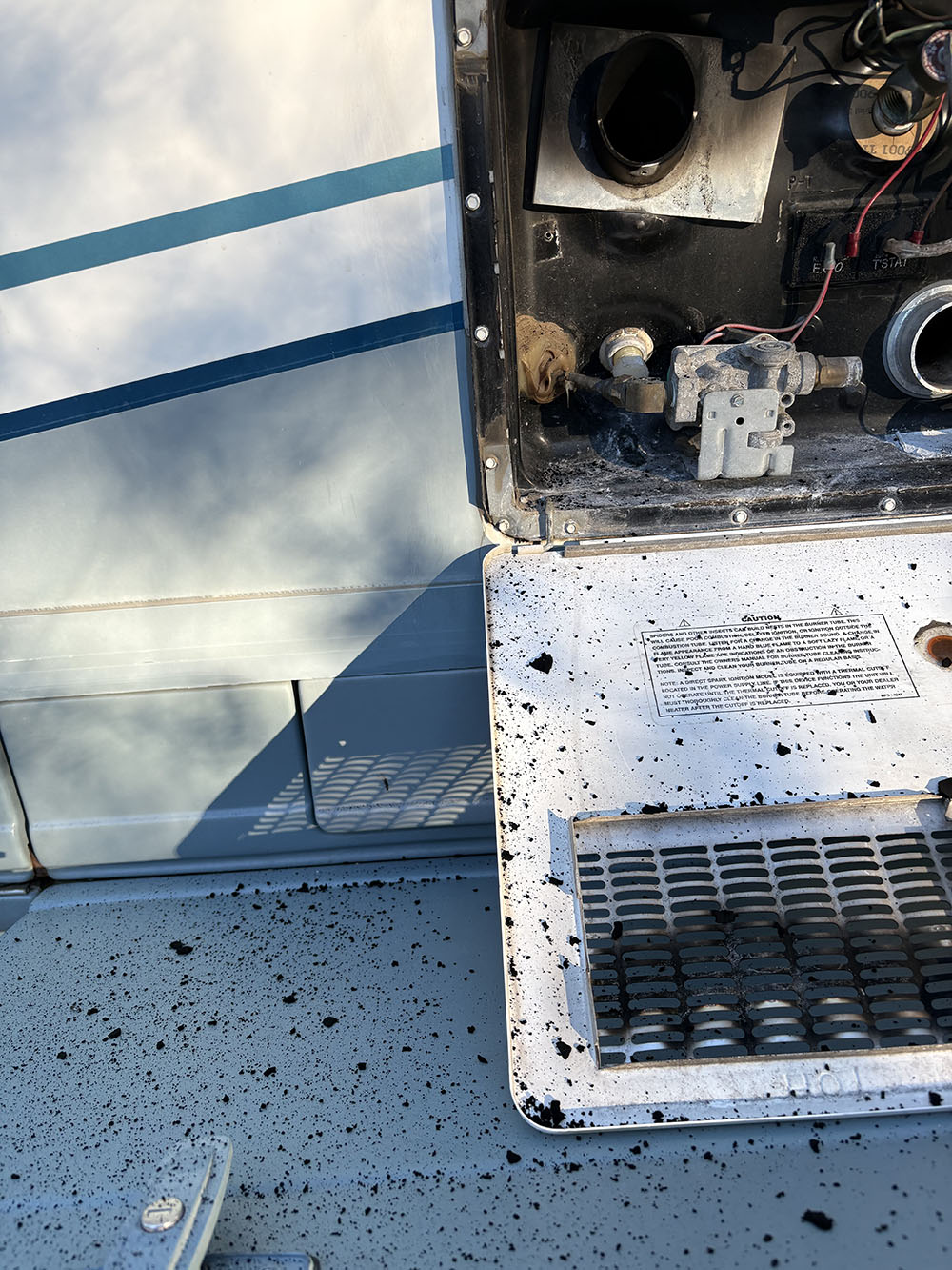 Though our hot water heater works, it leaves a sooty deposit on the side of our motorhome.