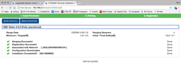With a satellite system, I should be able to get an Internet connection no matter where we camp. Theoretically. The HughesNET Gen 5 dish is large (3′ 3″) and takes up a fair amount of space at a campsite. Time will tell how it ultimately works out.