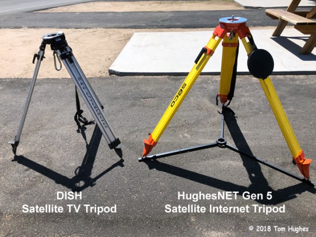 Following are photo comparisons between a typical satellite TV tripod dish (a DISH 1000.2) and the HughesNET Gen 5 tripod system: